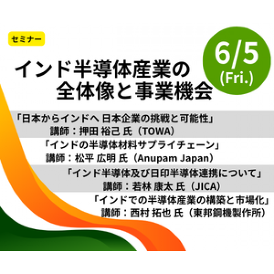 【セミナー】インド半導体産業の全体像と事業機会 〜政策・サプライチェーン・投資動向から読み解く〜