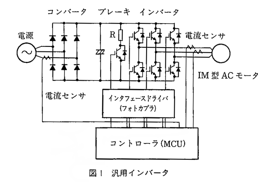 一般的には、交流モータの可変速回転数制御のための可変周波数電源を指す。すなわち、交流モータの回転数は機械構造的に決まっている極数と印加する電源の周波数によって決定されるが、実応用上前者は運転中に変更はできず、印加電源の周波数を変えることで、モータの回転数制御を行う必要がある(図1)。