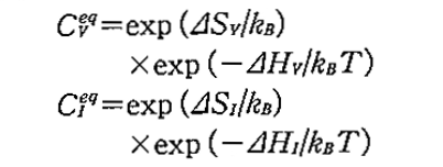 ここで、⊿Sᴠ、⊿Sɪはそれぞれの点欠陥形成のエントロピー、⊿Hᴠ、⊿Hɪは点欠陥形成のエンタルピーである。⊿Sより⊿Hの寄与の方が大きいことはわかっているが、まだ統一的な値はない。