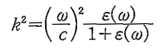 式に自由電子気体の誘電関数 ε(ω) = 1 - ωᴘ²/ω² を当てはめてみると、k~0でω~ck、kの大きいところで、 ε(ω) = -1 に対応する表面プラズモンの振動数、 ωsᴘ = ωᴘ / √2 に漸近する表面プラズモンポラリトンの分散関係がえられる。