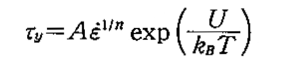 Si結晶の上降伏応力と下降伏応力はそれぞれ次式に従い、温度と歪速度に依存する。
